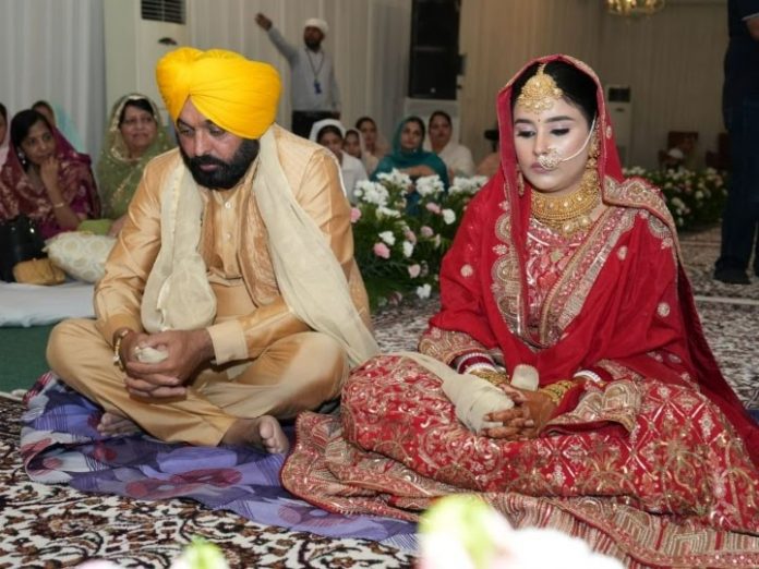 बता दें कि भगवंत मान आज चंडीगढ़ में अपने सरकारी आवास पर एक निजी समारोह में डॉ गुरप्रीत कौर से शादी की। वहीं मान का अपनी पहली पत्नी से करीब छह साल पहले तलाक हो गया था। शादी समारोह में दिल्ली के मुख्यमंत्री अरविंद केजरीवाल और उनका परिवार शामिल हुआ। मान की पूर्व पत्नी इंद्रप्रीत कौर और उनके बच्चे यूएसए में रह रहे हैं।