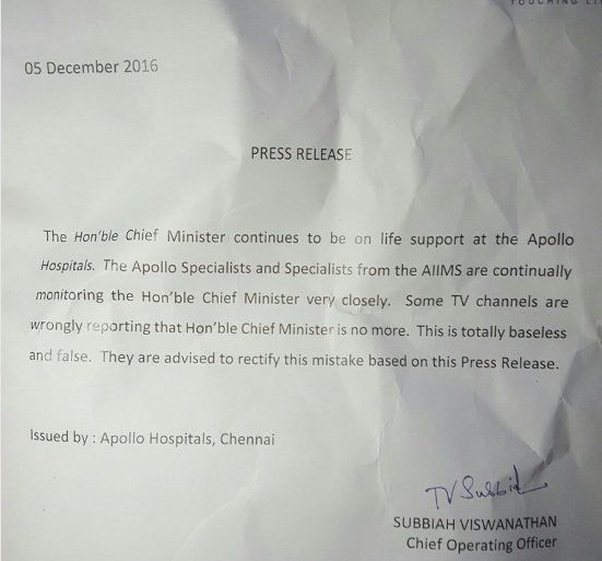 जयललिता की सेहत को लेकर अटकलों को तब बढ़ावा मिला, जब पार्टी मुख्यालय में झंडा आधा झुका दिया गया. हालांकि कुछ मिनटों बाद झंडे को फिर से ऊपर कर दिया गया. अपोलो अस्पताल की तरफ से बताया गया कि अपोलो और एम्स के डॉक्टरों की टीम जयललिता का लगातार इलाज कर रही है.