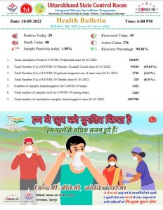 देहरादून – उत्तराखंड में आज कोरोना के 29 नए मामले मिले है।