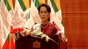 बड़ी खबर : म्यांमार की स्टेट काउंसलर आंग सान सू ची ने मंगलवार को कहा कि रोहिंग्या मुसलमान आतंकी वारदातों में शामिल हैं। रोहिंग्या मुसलमानों के मुद्दे पर देश को संबोधित करते हुए सू ची ने कहा कि जो लौटना चाहते हैं उनके लिए म्यांमार रिफ्यूजी वेरिफिकेशन प्रोसेस के लिए तैयार है। हम सभी मानवाधिकारों के उल्लंघन की निंदा करते हैं। हम चाहते हैं कि विश्व सिर्फ प्रभावित इलाकों के बारे में नहीं बल्कि हमारे पूरे देश के बारे में सोचे। हम म्यांमार को धार्मिक भावनाओं और जातीयता के आधार पर बांटना नहीं चाहते. नफरत और डर मुख्य अभिशाप हैं