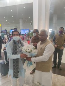 भाजपा उत्तराखंड चुनाव प्रभारी केंद्रीय मंत्री प्रह्लाद जोशी के उत्तराखण्ड आगमन पर जौलीग्रांट एयरपोर्ट पर स्वागत करते हुए प्रदेश अध्यक्ष मदन कौशिक। आपको बता दे कि जोशी आज विकास नगर में प्रबुद्ध सम्मेलन में भाग लेंगे। जिसके बाद राजा वांला सहसपुर में हर-घर भाजपा, घर-घर भाजपा अभियान में प्रतिभाग करेंगे। उसके बाद शाम 4 बजे भाजपा कार्यालय में पूर्व विधायकों व दायित्वधारियों की बैठक लेंगे।