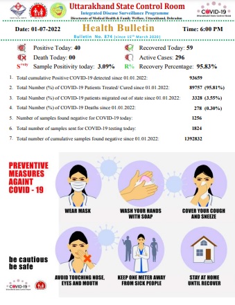 देहरादून – उत्तराखंड में आज कोरोना के 40 नए मामले मिले है।