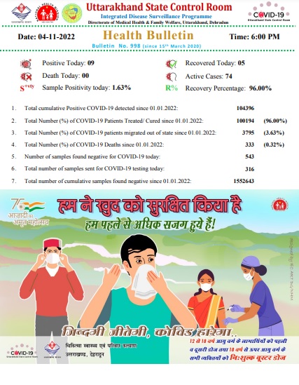 जिसमे देहरादून में 4, नैनीताल में 4 और उधम सिंह नगर में 1 मामले मिले है।