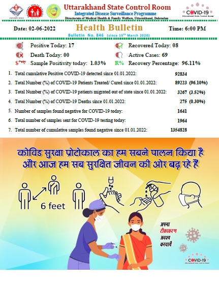 देहरादून – उत्तराखंड में आज कोरोना के 17 नए मामले मिले है।