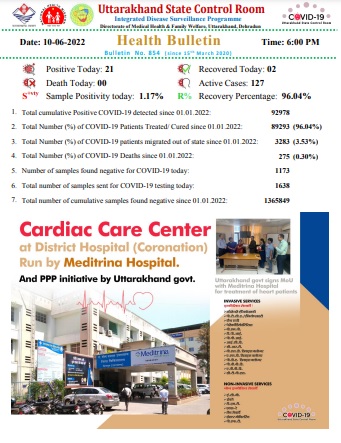 देहरादून – उत्तराखंड में आज कोरोना 21 नए मामले मिले है।
