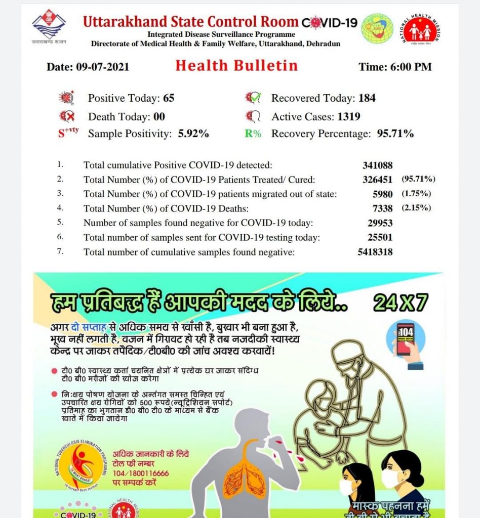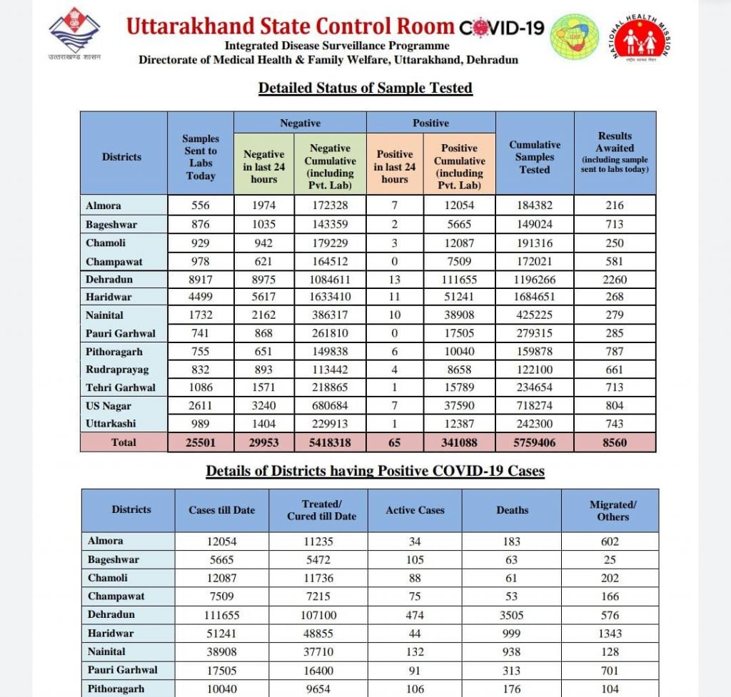 उत्तराखंड में राहतभरी खबर: आज कोरोना के 65 नए मामले, देहरादून में 13 नए केस, कोई मौत नहीं….