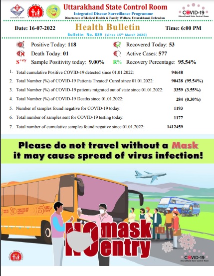 देहरादून – उत्तराखंड में आज कोरोना के 118 नए मामले मिले है।