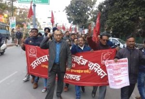 देहरादून- उत्तराखंड में राष्ट्रीकृत हड़ताल का व्यापक असर देखने को मिला। यहां बैंक, डाकघर, बीमा कर्मी, बिजली विभाग सहित, केंद्रीय ट्रेड यूनियनों के कर्मी हड़ताल पर रहे। राष्ट्रव्यापी हड़ताल के चलते देहरादून का राजपुर रोड स्थित पोस्ट ऑफिस खाली पड़ा रहा। राजधानी देहरादून में उत्तराखंड बैंक इंप्लॉइज यूनियन के कर्मियों ने रैली निकाकर विरोध जताया। यहां आयकर ऑफिस के सामने आयकर कर्मचारी समूह ग के सदस्यों ने धरना दिया। गांधी पार्क के सामने उत्तराखंड क्रांतिदल के सदस्यों ने सरकार द्वारा समूह ग हेतु शीघ्र अध्यादेश लाने की मांग के साथ धरना दिया। ऋषिकेश में रेलवे रोड स्थित स्टेट बैंक के बाहर बैंक कर्मियों ने प्रदर्शन किया। वहीं रुद्रपुर में राष्ट्रीकृत बैंक, बीमा कर्मी हड़ताल में रहे। आशा कार्यकर्ताओं ने भी हड़ताल को समर्थन दिया। हल्द्वानी स्थित बुद्धापार्क में केंद्रीय ट्रेड यूनियनों के संयुक्त आह्वान पर आहूत राष्ट्रीय हड़ताल में आशा कार्यकर्ताओं, बैंक कर्मियों, बीमा कर्मियों व अन्य समूहों का समर्थन मिला। हल्द्वानी प्रधान डाकघर में दो दिवसीय हड़ताल के दौरान प्रदर्शन करते कर्मचारी। नई टिहरी में स्टेट बैंक और उसके सहयोगी बैंक को छोड़कर अधिकांश बैंक, एलआईसी और अन्य बीमा कार्यालय के कर्मचारी विभिन्न मांगों को लेकर दो दिवसीय हड़ताल पर हैं। रुद्रप्रयाग में पंजाब नेशनल बैक बंद हैं। कर्मचारी हड़ताल पर हैं। ग्रामीण बैंकों में भी हड़ताल का असर देखने को मिला। कर्णप्रयाग के उत्तराखंड ग्रामीण बैंक में कामकाज ठप है। पौड़ी में भी हड़ताल का असर दिखाई दिया।
