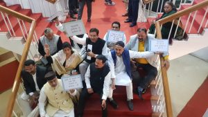 देहरादून- उत्तराखंड विधानसभा बजट सत्र की शुरुआत ही हंगामेदार रही। हरिद्वार जिले में हुए जहरीली शराब कांड को लेकर विपक्ष ने हंगामा कर दिया। सत्र शुरू होते ही राज्यपाल बेबीरानी मौर्य ने अभिभाषण पढ़ा, लेकिन इस दौरान सदन में विपक्ष ने शराब कांड को लेकर हंगामा कर दिया। विपक्ष के नेताओं ने हाथों में नारों लिखी तख्तियां उठाईं। साथ ही जहरीली शराब कांड पर विपक्ष ने आबकारी मंत्री के इस्तीफे की मांग भी की। वहीं नेता प्रतिपक्ष इंदिरा हृदयेश ने सवाल उठाया कि 11 बजे पहले राज्यपाल का अभिभाषण कैसे शुरू हुआ। उन्होंने सदन की परंपरा तोड़ने का आरोप लगाया।जिसके बाद राज्यपाल के अभिभाषण का बहिष्कार कर विपक्ष ने वॉकआउट कर दिया और कांग्रेसी विधायक धरने पर बैठ गए।