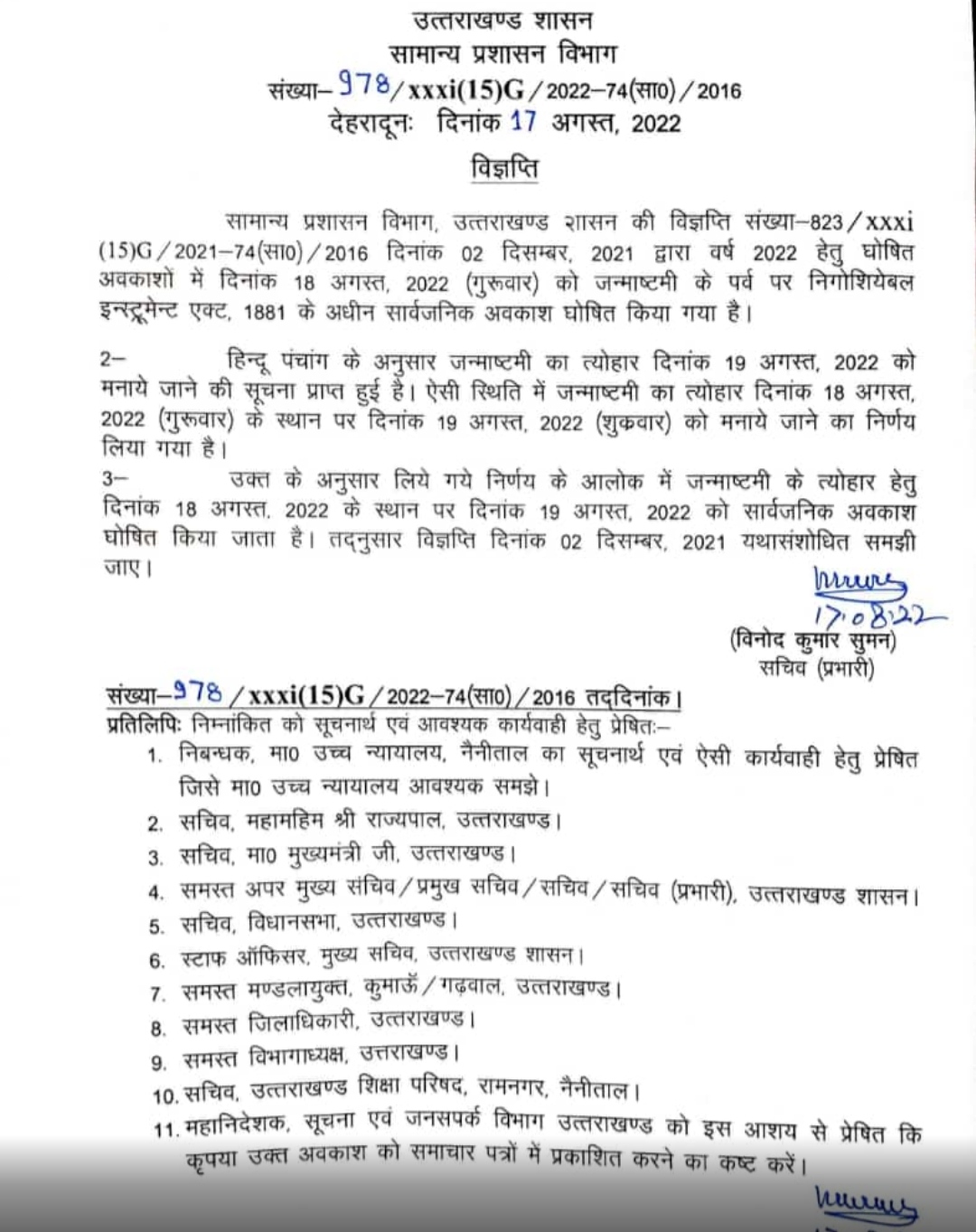 Homeराज्यउत्तराखण्डउत्तराखंड सरकार ने 19 अगस्त को जन्माष्टमी के अवसर पर जारी की...