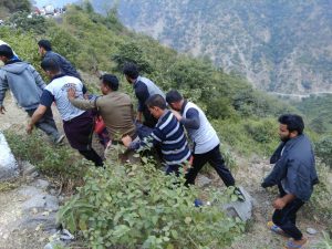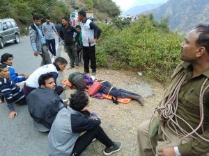 देवप्रयाग तीन धारा से 1 किलोमीटर आगे धोली धार ऋषिकेश रोड पर एक टाटा सुमो UK 07-TA 7206 गाड़ी जो कि रतूडा रुद्रप्रयाग से ऋषिकेश की ओर जा रही थी, जो 150 मीटर नीचे गहरी खाई में गिर गई। जिसमें अब तक पुलिस फोर्स व आपदा प्रबंधन टीम के द्वारा 8 घायलो को सीएससी देवप्रयाग उपचार हेतु भेजा गया है. जबकि टीम ने 4 शवो को भी बरामद किया है. हालांकि दुर्घटना के कारणों का अभी पता नही चल पा रहा है.घटना की सूचना मिलने पर स्थानीय बीजेपी विधायक विनोद कंडारी भी मोके पर पहुँच गए, उन्होंने बिना देरी किए हादसे में घायल लोगो को अपनी गाड़ी से अस्पताल पहुँचाया…..