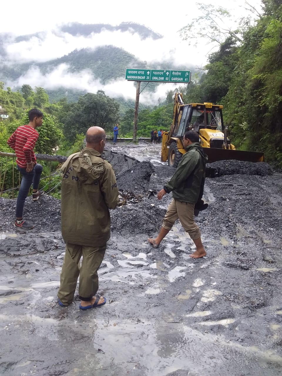 कर्णप्रयाग- ग्वालदम राष्ट्रीय राजमार्ग पर मलबा आने से हुआ बंद।
