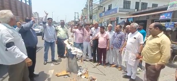 लक्सर नगर पालिकाध्यक्ष अम्बरीष गर्ग और भारतीय जनता पार्टी के मंडलाध्यक्ष बिशन पाल कश्यप के नेतृत्व में पार्टी के कई पदाधिकारियों और कार्यकर्ताओं नगर में ओवरब्रिज के निकट हाइवे पर कांग्रेस के खिलाफ नारेबाजी कर प्रदर्शन किया।