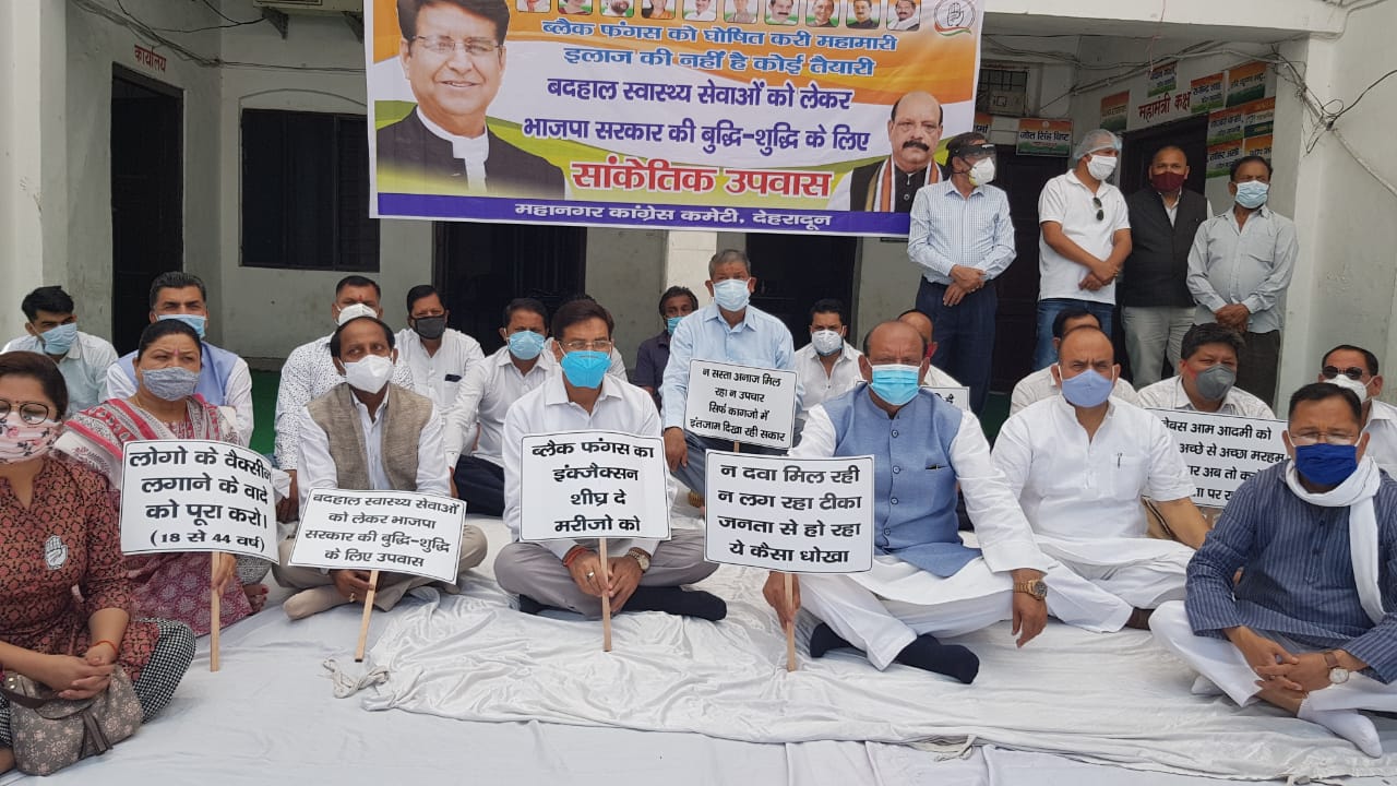 उत्तराखंड कांग्रेस प्रदेश अध्यक्ष प्रीतम सिंह और पूर्व मुख्यमंत्री हरीश रावत ने उत्तराखंड की बदहाल स्वास्थ्य सेवाओं को लेकर भाजपा सरकार की बुद्धि-शुद्धि के लिये सांकेतिक उपवास रखा। इस दौरान प्रीतम सिंह ने कहा प्रदेश सरकार को कोरोना और ब्लैक फंगस जैसी बीमारियों को लेकर हर तैयारी करनी चाहिए थी लेकिन जितनी तैयारी होनी चाहिए उसकी 10% भी सरकार नहीं कर पाई है उनके अनुसार सरकार ने आम जनता को मरने के लिए छोड़ दिया है। उनके अनुसार कांग्रेस को प्रदेश की आम जनता की जान की चिंता है इसलिए लगातार लोगों को राहत देने की कोशिश कांग्रेस कर रही है वहीं बीजेपी के नेता महज राजनीति करने के अलावा और कुछ काम नहीं कर रहे हैं।