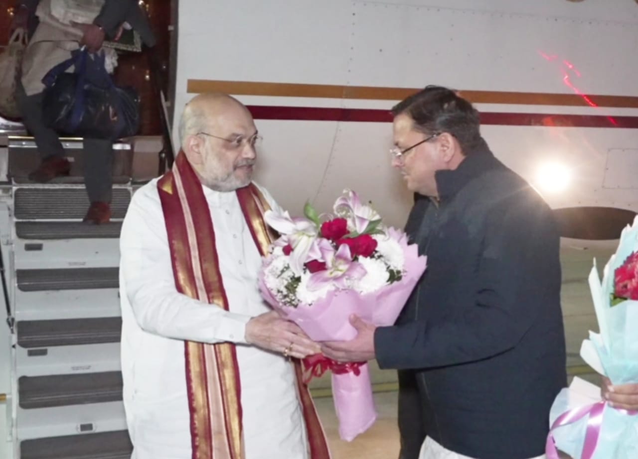 देहरादून – केंद्रीय गृह मंत्री अमित शाह उत्तराखंड दौरे पर देर शाम जौलीग्रांट एयरपोर्ट पहुंचे। जौलीग्रांट एयरपोर्ट पर मुख्यमंत्री पुष्कर सिंह धामी एवं कैबिनेट मंत्री सुबोध उनियाल,गणेश जोशी, प्रेमचंद अग्रवाल,सौरभ बहुगुणा,धनसिंह रावत,सांसद व पूर्व मुख्यमंत्री डॉ. रमेश पोखरियाल निशंक,पूर्व मुख्यमंत्री त्रिवेंद्र सिंह रावत,राजपुर विधायक खजान दास,मेयर सुनील उनियाल गामा,प्रदेश अध्यक्ष बीजेपी महेंद्र भट्ट ने बुके देकर उनका स्वागत किया।