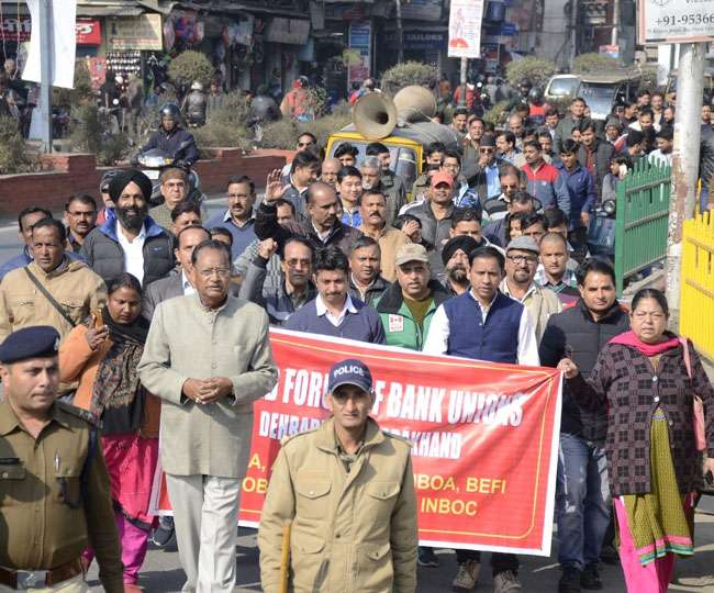 देहरादून में यूनाइटेड यूनियन ऑफ बैंक इंप्लायज के बैनर तले बैंकों के अधिकारियों और कर्मचारियों ने जुलूस निकाला और परेड ग्राउंड में केंद्र सरकार की नीतियों के खिलाफ विरोध प्रदर्शन किया। वहीं, ऋषिकेश में भी सभी बैंकों में हड़ताल रही। बैंकों की हड़ताल के चलते यहां करीब 150 करोड़ रुपये का कारोबार प्रभावित हुआ। यूनाइटेड यूनियन के सदस्य जगमोहन मेंदीरत्ता ने बताया कि यूनियन केंद्र सरकार की नीतियों के खिलाफ है। इससे बैंक की आर्थिक स्वायत्तता एवं मजबूती प्रभावित होगी। साथ ही उन्होंने कहा कि आज सफल हड़ताल के बाद भी अगर सरकार हमारी मर्जर को रोकने की व वेतनमान जल्द पुनिरीक्षित की मांग सरकार नहीं मानती तो आने वाले समय में बैंक कर्मचारी एक बड़े आंदोलन के लिए तैयार है।