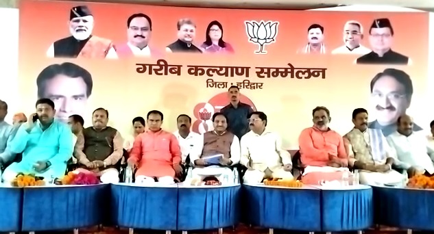 आज हरिद्वार के भारत सेवा आश्रम में गरीब कल्याण सम्मेलन कार्यक्रम का आयोजन किया गया। जिसमें सांसद रमेश पोखरियाल निशंक और प्रदेश के कैबिनेट मंत्री धन सिंह रावत समेत कई भाजपा नेता शामिल हुए।