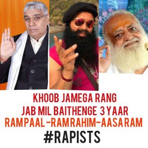 सोशल मिडिया में इस तरह की फोटो सहित चुटकलो ने धमाल मचा रखा है…लोग में इस तरह के चुटकले चर्चा का विषय बने हुए है… दरसल कल कोर्ट ने साध्वी के साथ यौन शोषण के आरोप में डेरा प्रमुख बाबा राम रहीम को दोषी करार देकर जेल भेजा है वंही बाबा आशा राम बापू भी यौन शोषण के आरोप में पहले से जेल में बंद है तो वंही खुद को संत मानने वाले बाबा रामपाल भी ढेरो आरोपों में जेल में बंद है