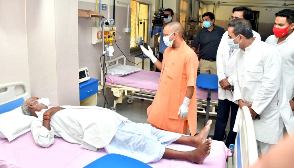 उत्तर प्रदेश के मुख्यमंत्री योगी आदित्यनाथ ने जनपद गोण्डा का भ्रमण कर देवीपाटन मण्डल के कोविड प्रबन्धन कार्यांे की समीक्षा की। उन्होंने इण्टीग्रेटेड कमाण्ड एण्ड कन्ट्रोल सेन्टर, डेडिकेटेड कोविड चिकित्सालय के पोस्ट कोविड वाॅर्ड, प्राथमिक स्वास्थ्य केन्द्र पन्त नगर तथा गेहूं क्रय केन्द्र पन्त नगर का निरीक्षण किया। उन्होंने विकास खण्ड झंझरी के ग्राम परेड सरकार पहुंचकर वहां निगरानी समिति द्वारा किए जा रहे कार्यों की समीक्षा की। उन्हांेने डेडिकेटेड कोविड चिकित्सालय में संचालित वैक्सीनेशन सेन्टर का निरीक्षण भी किया।