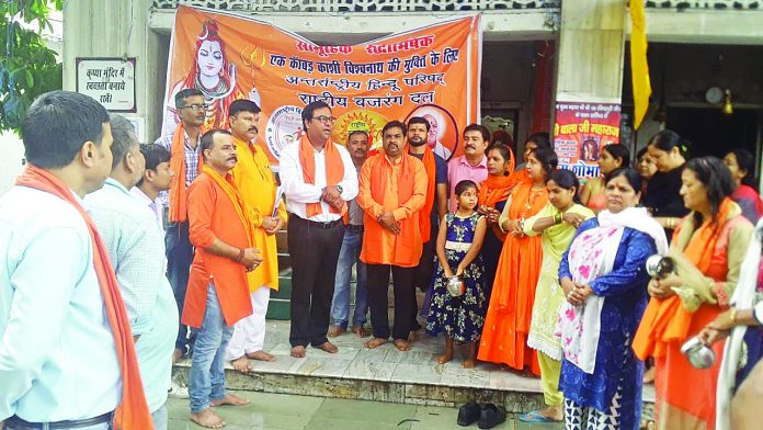 इस अवसर पर मुख्य वक्ता के रूप में राष्ट्रीय बजरंग दल के प्रदेश अध्यक्ष अमित तोमर ने कहा कि अंतरराष्ट्रीय हिन्दू परिषद के अंतरराष्ट्रीय अध्यक्ष डॉ. प्रवीण भाई तोगड़िया के आह्वान पर पूरे देश में कार्य कर रहा है। सोमवार को सम्पूर्ण भारत मे हर जिला केंद्र पर अहिप-राष्ट्रीय बजरंग दल के कार्यकर्ताओं द्वारा सामूहिक रुद्राभिषेक किया जा रहा है। संगठन ने काशी विश्वनाथ की पवित्र देवस्थली को शीघ्र विधर्मी अतिक्रमण से मुक्त कराने का प्रण किया। श्री तोमर ने कहा कि काशी विश्वनाथ कोई साधारण मंदिर नही अपितु पूरे विश्व का केंद्र बिंदु है। सनातन धर्म के प्रतीक काशी विश्नाथ पर विधर्मी आक्रांताओ द्वारा हमला कर कई बार उसे ध्वस्त करने के प्रयास किये गए परंतु महादेव की शक्ति के सामने कोई टिक ना सका परंतु विधर्मी आक्रांताओ ने काशी विश्वनाथ परिसर में ज्ञान व्यापी मस्जिद का निर्माण किया जो आज भी अस्तित्व में है, यहां तक कि परिसर में स्थित श्रृंगार गौरी के दर्शन की अनुमति तक हिन्दुओ को नही, इससे अपमानजनक और क्या हो सकता है जब हिन्दू अपने ही देवस्थलों में पूजा अर्चना और दर्शन ना कर सके। उन्होंने कहा कि अब समय आ गया है जब सम्पूर्ण भारतवर्ष के सनातनी साथ आये और महादेव की पवित्र देवस्थली को विधर्मी अतिक्रमण से मुक्त कराए।