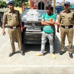 देहरादून: बीते रोज वरिष्ठ पुलिस अधीक्षक के निर्देशन में नशे के विरुद्ध चलाए जा रहे अभियान के अंतर्गत एवं पुलिस अधीक्षक नगर के पर्यवेक्षण व क्षेत्राधिकारी नेहरूकॉलोनी के दिशा निर्देशन में थाना क्लेमेंटटाउन पुलिस द्वारा कल कंट्रोल रूम देहरादून द्वारा होंडा सिटा गाड़ी UK07DC-4448 के संदिग्ध होने की सूचना मिली, सूचना पर चीता 51 कर्म0गणों ने गाड़ी की चेैकिंग/तलाश की. पोस्ट ऑफिस रोड कुमांई स्वीट शॉप के पास उक्त वाहन को रोक लिया| वाहन की तलाशी पर वाहन की डिक्की से 10 बोतल अग्रेंजी शराब ब्लेंडर प्राइड अवैध बरामद हुई| अभियुक्त अखिल कक्कड़ को धारा-60/72 आबकारी अधिनियम के अन्तर्गत गिरफ्तार किया गया| अभियुक्त के विरुद्ध थाना क्लेमेंटटाउन पर आबकारी अधिनियम के अंतर्गत अभियोग पंजीकृत किया गया|