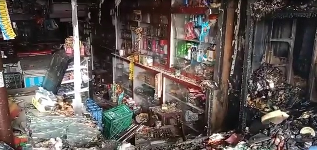 दुकान में शाट सर्किट की वजह से लगी आग। दुकान में रखा लाखो का सामान जलकर हुआ राख, सूचना मिलते ही पुलिस व फायर ब्रिगेड मौके पर पहुंची।