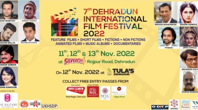 देहरादून – देहरादून फिल्म फेस्टिवल के सातवें संस्करण का आगाज शुक्रवार (आज) से सिल्वर सिटी में होगा। फेस्टिवल के आयोजक राजेश शर्मा ने पत्रकारों को बताया कि फेस्टिवल में फिल्म निर्माता एवं निर्देशक मधुर भंडारकर, रोहित बॉस रॉय, बिजेंद्र काला, करण प्रधान, शाहिद माल्या, रूपा गांगुली, दीपिका चिखलिया, एहसान कुरैशी आदि शिरकत कर रहे हैं।