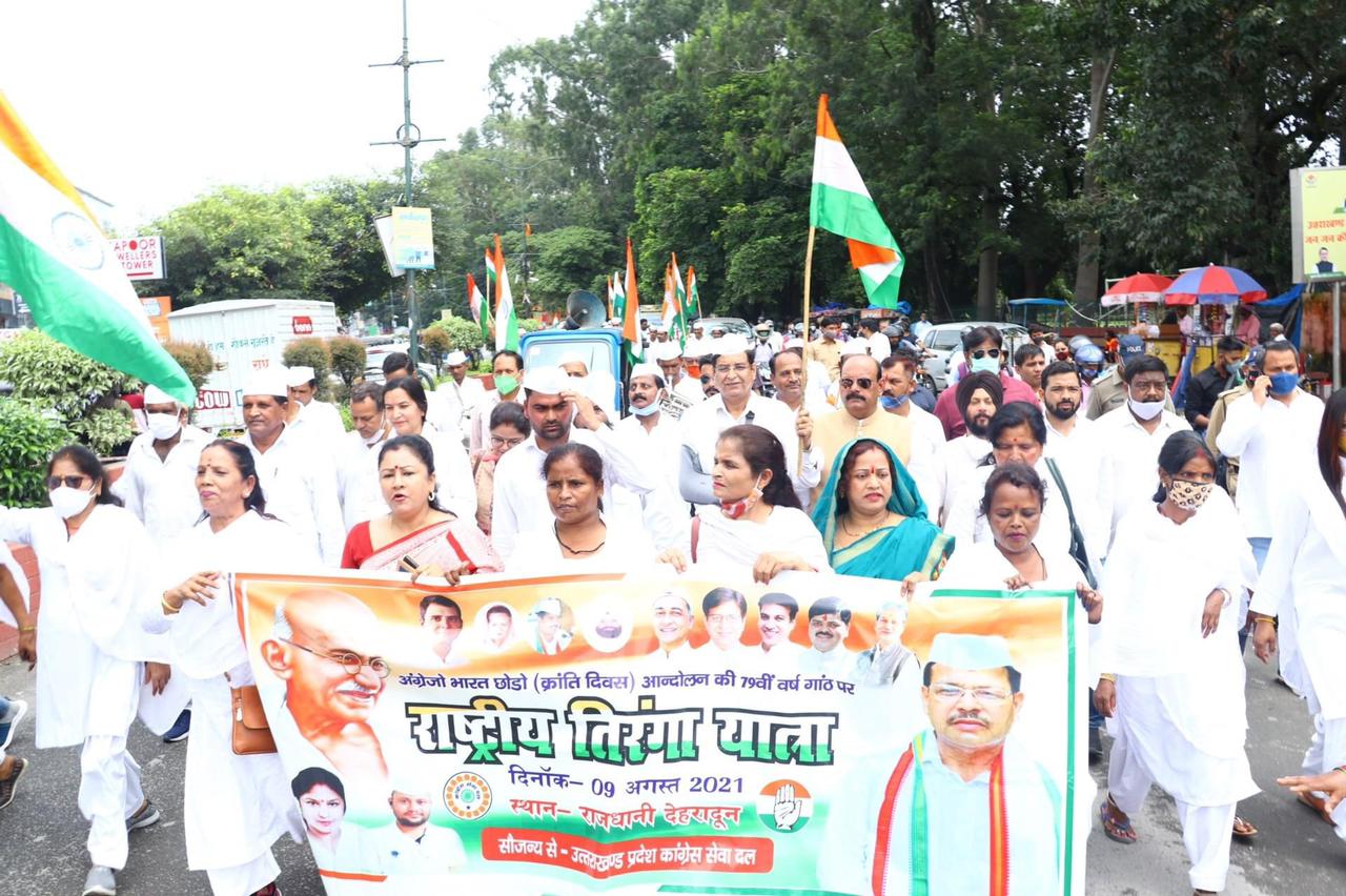 अगस्त क्रांति दिवस के उपलक्ष में कांग्रेस ने तिरंगा यात्रा निकाली। जिसका आयोजन कांग्रेस भवन से घंटाघर, दर्शनलाल चौक होते हुए वापस कांग्रेस भवन तक किया गया। नेता प्रतिपक्ष प्रीतम सिंह ने यात्रा की अगुआई की। तिरंगा यात्रा में युवा कांग्रेस, एनएसयूआइ, महिला कांग्रेस, सेवादल, महानगर कांग्रेस, पूर्व सैनिक संगठन ने भाग लिया।