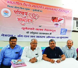 उन्होंने बताया कि पिछली कार्यकारिणी की बैठक में लिए गए निर्णय के अनुसार नेत्रदान और अंगदान क्षेत्र में जागरूकता लाने के लिए प्रभावी कार्यवाही करते हुए यूनेस्को क्लब देहरादून के साथ मिलकर संस्था संयुक्त अभियान चलाएगी और “पर उपदेश कुशल बहुतेरे” के बदले “चैरिटी बिगिंस फ्रॉम होम” के सिद्धांत पर काम करते हुए सबसे पहले स्वयं नेत्रदान और अंगदान करने का संकल्प पत्र भरेंगे। 27 मई के कार्यक्रम में जहां एक और ऐसे लोगों की घोषणा की जाएगी वहीं दूसरी ओर परिचय सम्मेलन में आए और “चट मंगनी पट ब्याह” करने वाले जोड़ों को वही विवाह संस्कार संपन्न कराने की सुविधा दी प्रदान की जाएगी। कार्यक्रम स्थल पर जन्मपत्री मिलान करने वाले पंडित जी तथा आपस में विचार विमर्श करने के लिए परिवारों को अलग से बैठने की सुविधा भी उपलब्ध कराई जाएगी। अंगदान के महत्व पर प्रकाश डालते हुए श्री विनय गोयल ने ने कहा कि देव लोक की रक्षा के लिए भगवान विष्णु की सलाह पर देवराज इंद्र ने ऋषि दधीचि से उनकी अस्थियां दान में ले कर वज्र का निर्माण किया था इससे अंगदान की महत्ता का पौराणिक महत्व समझा जा सकता है। उन्होंने कहा कि जहां एक और किसी भी व्यक्ति की मृत्यु के समय उसके शरीर पर धारण किए आभूषणों को बहुत मूल्यवान मानकर कर उतार लिया जाता है किंतु नेत्र एवं अन्य अमूल्य ईश्वरप्रदत्त आभूषणों को यूं ही नष्ट कर दिया जाता है। इसलिए समाज में एक वैचारिक क्रांति की आवश्यकता है और इसमें भारतीय वैश्य महासंघ एवं यूनेस्को क्लब देहरादून अपनी अग्रणी भूमिका निभाएंगे ।