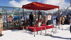 देहरादून- औली में होने वाली चार दिवसीय नेशनल स्कीइंग एंड स्नोबोर्ड चैंपियनशिप का आज आगाज हो गया है। चैंपियनशिप का शुभारंभ मुख्यमंत्री त्रिवेंद्र सिंह रावत और पर्यटन मंत्री सतपाल महाराज ने किया। चैंपियनशिप के लिए शुक्रवार को देशभर की दस टीमें औली पहुंच चुकी हैं, जिसमें 293 खिलाड़ी प्रतिभाग करेंगे। शुक्रवार को हुई बर्फबारी के कारण औली में ठंड में इजाफा हो गया है।