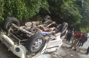 तभी स्कूल से एक किलोमीटर की दूरी पर स्थित एक तीव्र मोड़ पर बोलेरो गाड़ी संख्या यूके 08 जीए 0128 अनियंत्रित होकर खाई में जा गिरी। गाड़ी ऊपर की सड़क से नीचे की सड़क में पहुंच गई, जिससे सभी पुलिस कर्मियों को गंभीर चोट आई है। बोलेरो ऊपर को आ रही टाटा नैनो यूपी 15 बीजेड1856 पर जा गिरी। मौके पर मौजूद पुलिस फोर्स ने सभी को निकालकर हल्द्वानी के सुशीला तिवारी अस्पताल भिजवाया। जहां सभी की हालत गंभीर बताई जा रही है।