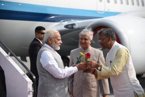 बड़ी खबर : प्रधानमंत्री नरेन्द्र मोदी एक सप्ताह के भीतर अपने दूसरे उत्तराखंड दौरे पर गुरुवार को देहरादून पहुंचे। प्रदेश में अपने दो दिवसीय प्रवास के दौरान पीएम मसूरी स्थित प्रतिष्ठित लाल बहादुर शास्त्री राष्ट्रीय प्रशासनिक अकादमी में प्रशिक्षु आईएएस अधिकारियों को संबोधित करेंगे। देहरादून जौलीग्रांट हवाई अड्डा पहुंचने पर उत्तराखंड के राज्यपाल डॉ कृष्णकांत पाल, मुख्यमंत्री त्रिवेंद्र सिंह रावत, राज्य विधानसभा अध्यक्ष प्रेमचंद्र अग्रवाल और मुख्य सचिव उत्पल कुमार सिंह ने प्रधानमंत्री मोदी का स्वागत किया।