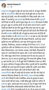 देहरादून। पूर्व सीएम और कांग्रेस के राष्ट्रीय महासचिव हरीश रावत ने 2024 में राजनीति से सन्यास लेने का एलान किया है। हरीश रावत ने फेसबुक पर पोस्ट डालकर ये खुलासा किया है। हालांकि उन्होंने लिखा है कि 2024 में राहुल गांधी के प्रधानमंत्री बनने के बाद वे सन्यास ले लेंगे। तब तक उनके सन्यास का कोई इरादा नहीं है।