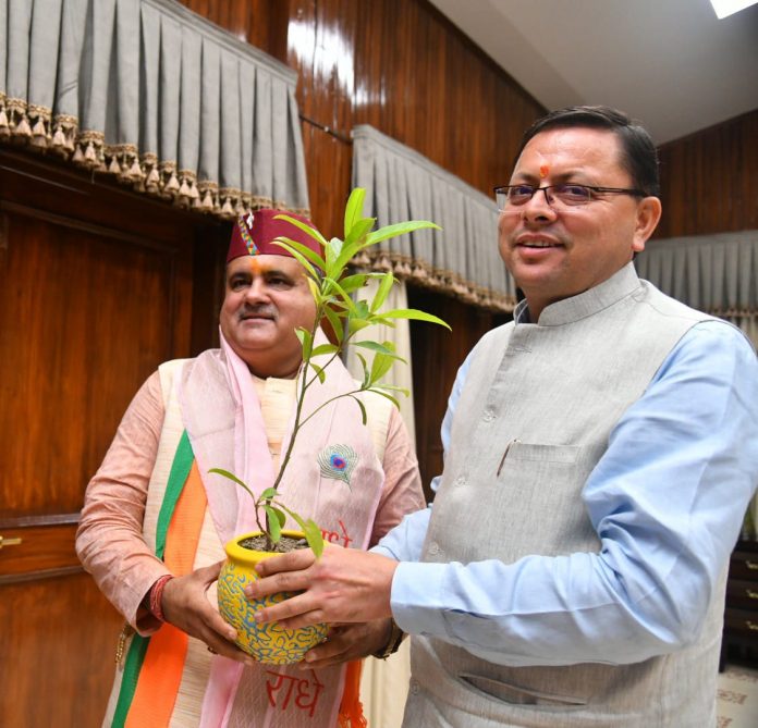 प्रदेश अध्यक्ष नियुक्त होने पर मुख्यमंत्री पुष्कर सिंह धामी ने दी महेंद्र भट्ट को बधाई।