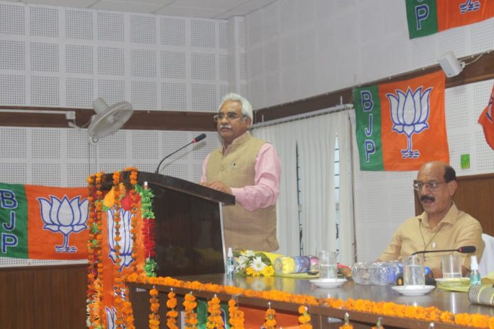 देहरादून। भाजपा अध्यक्ष मदन कौशिक ने कहा कि यह सौभाग्य की बात है कि दृढ संकल्प और मनोयोग वाला कार्यकर्ता महज भाजपा के पास ही है और अन्य दलों के पास नहीं है। भारतीय जनता पार्टी की पौड़ी जिले कि कार्यसमिति की जिला पंचायत सभागार में आयोजित बैठक को सम्बोधित करते हुए उन्होंने कहा कि भाजपा ने 2022 के रोडमैप को तैयार कर लिया है, जिसकी सुरुआत जिले की कार्य समति की बैठकों से प्रारंभ हो रहा है। उन्होंने कहा कि आजादी के बाद से अब तक के इतिहास में देखा जाए तो भाजपा की केंद्र सरकार ने विश्व में देश का नाम हर क्षेत्र में रोशन किया है। पहले जहां हमारा देश वैक्सीन के लिए अन्य देशों पर निर्भर रहता था तो आज कोरोना वेक्सीन बनाकर देश ने सारे विश्व को सन्देश दे दिया है कि भारत अब आत्मनिर्भरता की और आगे बढ़ रहा है। कौशिक ने कहा कि देश व प्रदेश में अपने शासन काल में भ्र्ष्टाचार देने वाली कांग्रेस आज साफ नियत वाली हमारी सरकार पर प्रश्नचिन्ह लगाती है तो उनके इस प्रकार के व्यवहार को देखकर अचम्भा होता है। जहां कोरोना काल मे कांग्रेस सहित पूरा विपक्ष लॉक डाउन में अपने घरों में बैठकर सरकारों को कोसने का काम कर रहा था वहां भारतीय जनता पार्टी का कार्यकर्ता सेवा ही संगठन से नर सेवा नारायण सेवा को साकार करते हुऐ जनता के बीच मे जाकर सेवा कार्य मे लगा हुआ था। उन्होंने कहा कि भाजपा की ताकत उसका कार्यकर्ता है। कौशिक ने कहा कि जैसा संगठन का ढांचा हमारी पार्टी का वह किसी ओर राजनीतिक पार्टी के पास नही। आज बूथ तक हम बहुत मजबूत है। उन्होंने नारा दिया युवा नेतृत्व और मजबूत संगठन की बदौलत 2022 में अपने लक्ष्य 60 पार को निश्चित रूप से प्राप्त करेंगे। बैठक की अध्यक्षता जिलाअध्यक्ष संपत सिंह रावत ने किया। बैठक में पौड़ी जिले के भाजपा संगठन प्रभारी प्रदेशमहामंत्री राजेन्द्र भंडारी ने पिछले तीन माह में जिले में किये गए संगठन के कार्यों की समीक्षा की। पोड़ी जिले के प्रभारी मंत्री सुबोध उनियाल ने प्रदेश सरकार द्वारा किये गए साढ़े 4 वर्षों के अभूतपूर्व विकास कार्यों और जनकल्याणकारी योजनाओं की जानकारी दी। उन्होंने कहा कि उत्तराखंड की सरकार ने उत्तराखंड के विकास के लिए मजबूत रोडमैप पर काम किया । बैठक में कोरोना वैश्विक महामारी के जान गंवाने वाले नागरिको के लिए शोक प्रस्ताव पारित किया गया व साथ ही पूरे जनपद की 6 विधानसभाओं का राजनीतिक प्रस्ताव भी पास किया गया। राजनेतिक प्रस्ताव का समर्थन केबिनेट मंत्री सतपाल महाराज ने किया। बैठक में कैबिनेट मंत्री सतपाल महाराज, के मंत्री डॉ. धनसिंह रावत, महिला मोर्चा की राष्ट्रीय महामंत्री दीप्ति रावत , प्रदेश प्रवक्ता बिपिन कैंथोला, ऋतु भूषण खंडूरी महिला मोर्चा प्रदेश अध्यक्ष, पौड़ी के वि