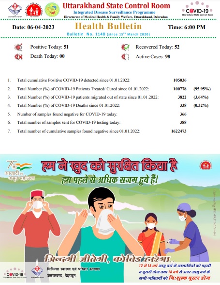 देहरादून – उत्तराखंड में आज कोरोना के 51 नए मामले मिले है।