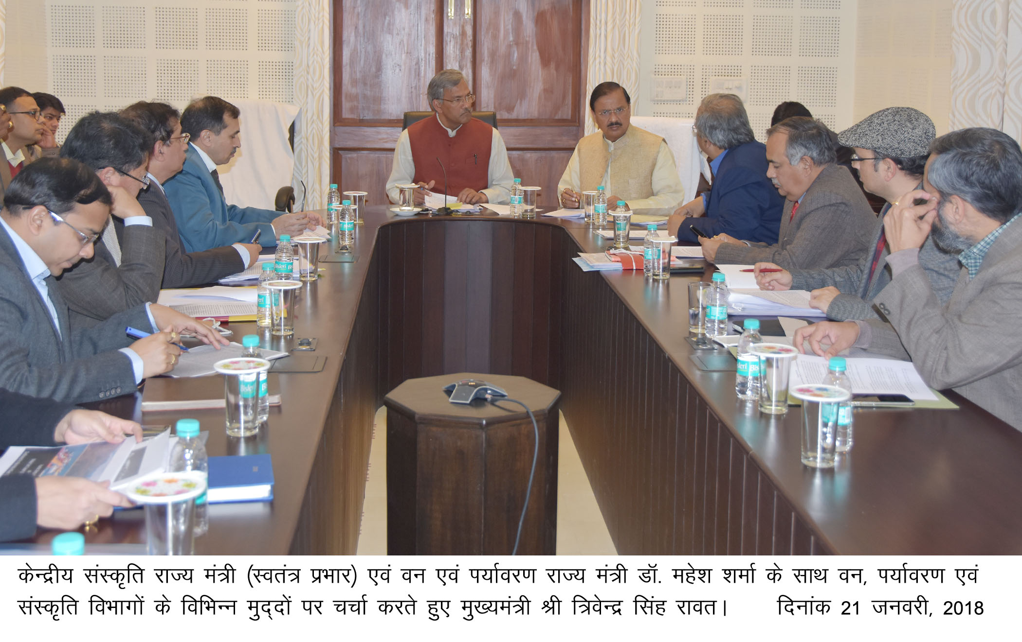 मुख्यमंत्री त्रिवेन्द्र सिंह रावत ने रविवार को मुख्यमंत्री आवास पर केन्द्रीय संस्कृति राज्य मंत्री (स्वतंत्र प्रभार) एवं वन एवं पर्यावरण राज्य मंत्री डाॅ. महेश शर्मा के साथ वन, पर्यावरण एवं संस्कृति विभागों के विभिन्न मुद्दों पर चर्चा की। राज्य में तीन नये संग्रहालय और साइंस सिटी की स्थापना का निर्णय लिया गया है।