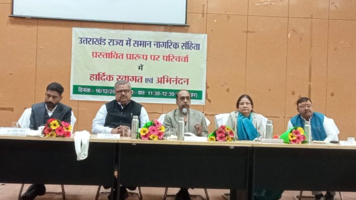 समिति के विशेषज्ञ सदस्य व उत्तराखंड के पूर्व मुख्य सचिव शत्रुघ्न सिंह द्वारा मुख्य अतिथि के रूप में प्रतिभाग करते हुए उत्तराखंड में समान नागरिक संहिता विशेष से संबंधित क्षेत्रीय भ्रमण के दौरान लोगों से इस विषय पर सुझाव तथा प्रतिक्रिया प्राप्त किये गये। उन्होंने कहा कि उत्तराखंड में समान नागरिक संहिता प्रारूप को तैयार करने से पहले परिचर्चा का यह अंतिम दौर है। बताया कि लोगों के साथ इस विषय पर चमोली जनपद के माणा गांव से शुरू कर श्रीनगर पर समाप्त हुआ है।