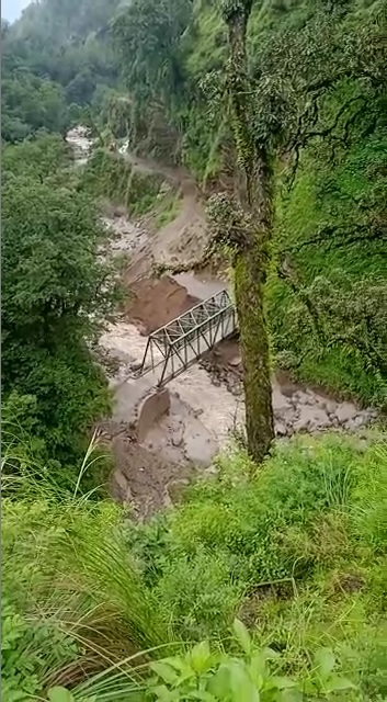 पिथौरागढ़ – पिथौरागढ़ जिले के मुनस्यारी ग्रामसभा बोना के खुलैती जंगल में कल रात बादल फटने से बोना और तोमिक को जोड़ने वाला मोटर पुल क्षतिग्रस्त हो गया और पैदल पुल ध्वस्त हो गया है, जिस कारण बोना गाँव का संपर्क मुख्यालय से कट चुका है।