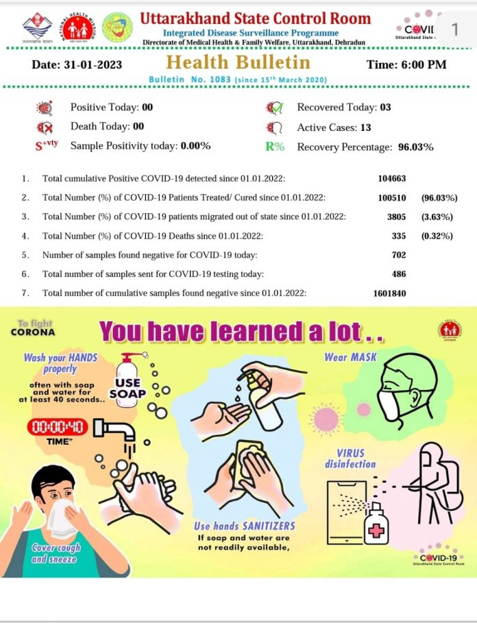 Homeराज्यउत्तराखण्डब्रेकिंग: उत्तराखंड में कोरोना के मामलों में लगा विराम, नहीं मिला एक... बड़ी खबरब्रेकिंग न्यूज़राज्यउत्तराखण्डदेहरादूनसमाचारहेल्थ ब्रेकिंग: उत्तराखंड में कोरोना के मामलों में लगा विराम, नहीं मिला एक भी मरीज। By Vision Desk 3 January 31, 2023 0 173 Share FacebookTwitterPinterestWhatsApp देहरादून – उत्तराखंड में आज नहीं मिला कोरोना का एक भी नया मामला। आज कोई मौत नही हुई है। Tags#covidcovid active caseHealth Bulletintoday's active caseuttarakhand health departmentuttarakhand newsvision2020 news Share FacebookTwitterPinterestWhatsApp Previous articleबिग ब्रेकिंग: उत्तराखण्ड की झांकी को देश मे प्रथम स्थान के लिए किया गया पुरस्कृत।Next articleनशा तस्करों के विरुद्ध कार्यवाही जारी, स्नाइपर डॉग ने खोज निकाला झाड़ियों में छिपा गांजा। Vision Desk 3http://vision2020news.com/उत्तराखंड ताज़ा समाचार - Vision 2020 News gives you the Latest News, Breaking News in Hindi.Uttarakhand News, Dehradun News, Latest News, daily news, headlines, sports, entertainment and business from Uttarakhand, India. RELATED ARTICLES उत्तराखण्ड देहरादून: “ऑपरेशन नाइट वॉच” के तहत पुलिस की बड़ी कार्रवाई, हुड़दंगियों पर कसा शिकंजा March 27, 2026 उत्तराखण्ड एकदिवसीय पिथौरागढ़ दौरे पर पहुंचे राज्यपाल गुरमीत सिंह, विभिन्न स्टॉलों का निरिक्षण कर की योजनाओं की समीक्षा March 27, 2026 उत्तराखण्ड दिल्ली में प्रधानमंत्री मोदी से मिले सीएम धामी, रामनवमी की दी शुभकामनाएं March 27, 2026 LEAVE A REPLY Cancel reply Comment: Please enter your comment! Name:* Please enter your name here Email:* You have entered an incorrect email address! Please enter your email address here Website: Save my name, email, and website in this browser for the next time I comment. Most Popular देहरादून: “ऑपरेशन नाइट वॉच” के तहत पुलिस की बड़ी कार्रवाई, हुड़दंगियों पर कसा शिकंजा March 27, 2026 एकदिवसीय पिथौरागढ़ दौरे पर पहुंचे राज्यपाल गुरमीत सिंह, विभिन्न स्टॉलों का निरिक्षण कर की योजनाओं की समीक्षा March 27, 2026 दिल्ली में प्रधानमंत्री मोदी से मिले सीएम धामी, रामनवमी की दी शुभकामनाएं March 27, 2026 देहरादून: ₹242 करोड़ की योजनाओं को CM धामी की मंजूरी, इंफ्रास्ट्रक्चर को मिलेगा बड़ा बूस्ट March 27, 2026 Load more Recent Comments https://www.viagrasansordonnancefr.com/acheter-sildenafil-pfizer-generika/ on साइबर ठग ने जब डीएम से पूछा एटीएम कोड…पढ़े खबर Jan Manch TV on अगर है एक रूपए का नोट? तो जाने कैसे बन सकते हैं करोड़पति…!!! Ajit Desai on दिल्ली में अलर्ट, खुरासान गुट के दो आतंकियों के आने का शक! Avidhesh singh on म्यूजिक सुनते हुए वैसी ही खुशी महसूस होती है जैसी सेक्स प्लेजर!
