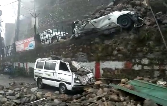देहरादून/मसूरी – मसूरी में भारी बारिश के चलते मसूरी लाइब्रेरी चौक के पास बाल्मिकी मंदिर के सामने सवाय होटल का पुश्ता गिरा।
