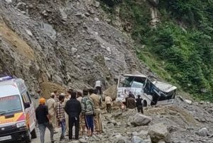 देहरादून- उत्तराखंड में बद्रीनाथ हाइवे पर लंबागढ़ स्लाइड जोन में बस पर एक विशाल बोल्डर गिर गया। जिससे सात यात्रियों की मौत हो गई है। जानकारी के मुताबिक यह हादसा लामबगड़ में आज सुबह नौ बजे हुआ। एसडीआरएफ, पुलिस, प्रशासन की टीम और स्थानीय लोग रेस्क्यू कार्य में लगे हैं। फिलहाल यह पता नहीं लग पाया है कि यात्री कहां के हैं। हादसे के बाद मौके पर अफरा-तफरी मच गई। अभी पांच लोगों को बस से निकाला गया है। आठ लोग बस के अंदर फंसे हुए हैं। यह बस बदरीनाथ से लौट रही थी।
