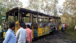 हरिद्वार स्थित एल्प्स कम्पनी की यह बस प्रतिदिन की तरह कलियर क्षेत्र से कर्मचारियों को लेने आई थी। बस अलग अलग गांव से महिलाओं एवं पुरुषों को एकत्र करती है। आज सुबह वह इनायतपुर से सिडकुल की ओर जा रही थी। जैसे ही बस हद्दिवाला के समीप पहुंची तो सड़क के ऊपर से गुजर रही हाईटेंशन विधुत लाईन का तार बस से टच हो गया। इस कारण बस में करंट फैल गया और अचानक आग लग गयी। आग लगते ही सवारियों में चीख पुकार मच गई। बस में सवार लोगों को इतना मौका भी नही मिला कि वह अपनी जान बचाने के लिए भाग पाएं। बस में सवार करीब आधा दर्जन लोग बुरी तरह झुलस गए। मौके पर भारी संख्या में ग्रामीणों की भीड़ जमा हो गयी। वहीं सूचना परिजनों को मिली तो वह भी घटनास्थल की ओर दौड़ लिए। मौके पर पहुंची पुलिस ने घायलों को रुड़की सिविल अस्पताल भिजवाया गया।