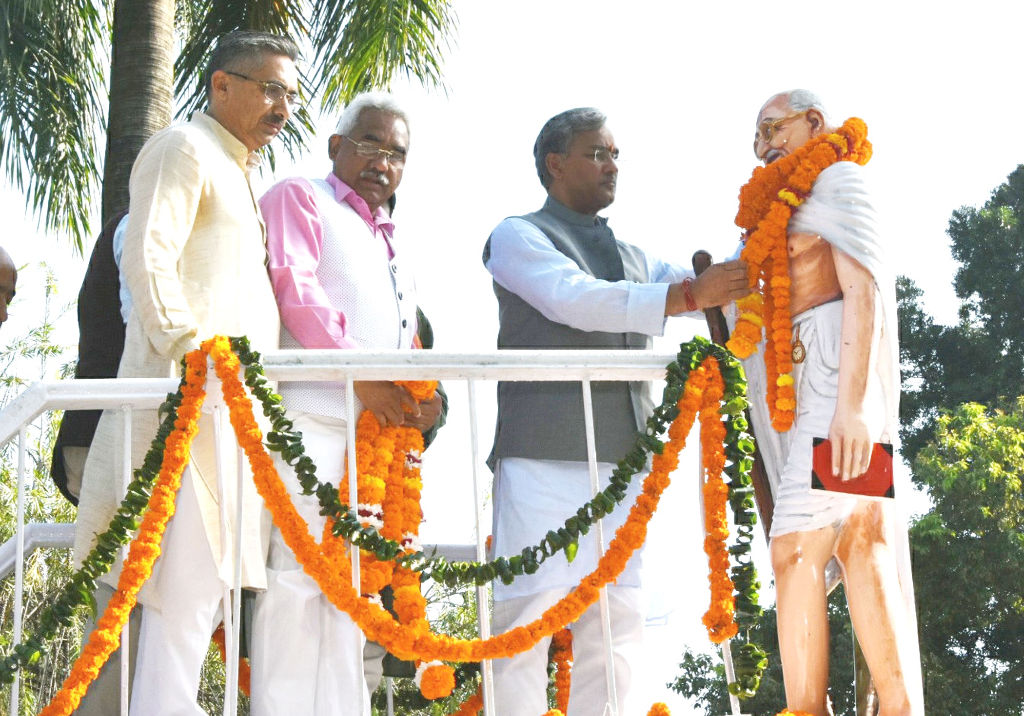 देहरादून- राजधानी देहरादून मे आज मुख्यमंत्री त्रिवेंद्र रावत ने महात्मा गांधी की 150वीं जयंती पर गांधी पार्क में गांधी जी की प्रतिमा पर माल्यार्पण किया। इस दौरान उन्होंने कहा कि गांधी जी ने सत्य और अहिंसा के मार्ग पर चलकर देश को आजादी दिलाई थी और अंग्रेजी हुकूमत को पस्त कर दिया था। आज अंतरराष्ट्रीय स्तर पर पीएम नरेंद्र मोदी की अध्यक्षता में गांधी जयंती पर कई कार्यक्रम आयोजित किए जा रहे हैं। भारत में भी सभी राज्यों में अलग-अलग कार्यक्रम हो रहे हैं। सीएम ने कहा कि नरेंद्र मोदी गांधी जी के ग्राम स्वराज के सपनों को साकार कर रहे हैं। हमारे कार्यकर्ता पद यात्रा के माध्यम से गांधी जी के आदर्श विचारधारा और सरकार की योजनाओं को जन-जन तक पहुंचाएंगे। वहीं 2 अक्टूबर को हुए रामपुर तिराहा कांड को लेकर मुख्यमंत्री त्रिवेंद्र सिंह रावत ने कहा कि इसकी जांच चल रही है। निश्चित ही सीबीआई दोषियों तक पहुंचेगी। आपको बता दे कि आज ही के दिन यानि 2 अक्टूबर को रामपुर तिराहा कांड हुआ था। शहीदों की कुर्बानी से उत्तराखंड राज्य बना था।