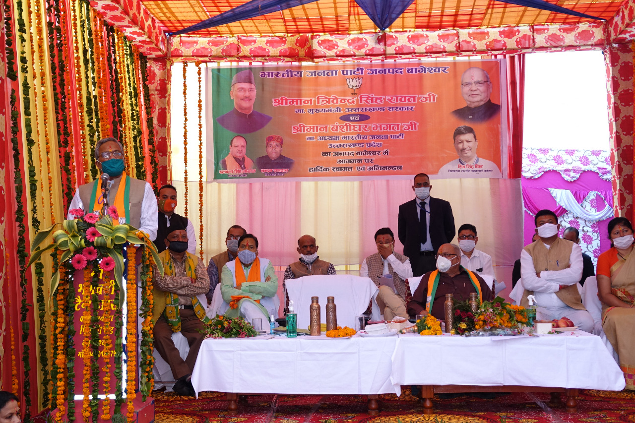 मुख्यमंत्री ने कहा कि प्रदेश सरकार विकास को प्राथमिकता देते हुए अपना कार्य कर रही है। साढ़े तीन वर्षों में प्रदेश सरकार ने अपनी साफ सुथरी छवि बनाई है, इसी का परिणाम है कि इस अवधि में कोई भी भ्रष्टाचार का मामला नहीं आया। कोविड के दौरान भी प्रदेश सरकार ने विकास कार्यों को रूकने नहीं दिया। कोरोना संक्रमण के रोकथाम एवं नियंत्रण के लिए स्वास्थ को सर्वोच्च प्राथमिकता मानते हुए प्रत्येक जनपद में आईसीयू तथा ऑक्सीजन बैड की उपलब्धता सुनिश्चित करायी है। उन्होंने कहा कि प्रदेश में वर्तमान समय में 2400 डॉक्टर कार्यरत है तथा 720 डॉक्टर तथा नर्सेज की भर्ती की जा रही है। उत्तराखण्ड अटल आयुष्मान योजना की राष्ट्रीय स्तर पर सराहना हुई है। इस योजना के अन्तर्गत देश के 22 हजार अस्पतालों में 05 लाख रूपये की राशि तक की चिकित्सा सुविधा का लाभ उठा सकते हैं। उन्होंने कहा कि अगले सत्र से अल्मोड़ा मेडिकल कॉलेज में कक्षायें शुरू हो जायेंगी तथा पिथौरागढ़, हरिद्वार व रूद्रपुर में मेडिकल कालेजों की स्वीकृति मिल चुकी है। उन्होंने कहा कि उत्तराखण्ड देश का पहला प्रदेश है जहां 500 स्कूलों में ऑनलाइन कक्षायें शुरू करायी गयी है तथा पूरे प्रदेश में एनसीईआरटी की किताबें लागू की गयी है। ट्रांसफर एक्ट लाया गया है जिससे कार्यों में पारदर्शिता आयी है। प्रदेश सरकार बेटी बचाओं-बेटी पढाओं योजना पर बेहतरीन कार्य कर रही है। सरकार मूलभूत सुविधाओं को सर्वोच्चता दे रही है जिसके कारण हर गॉव को सड़क व बिजली सुविधा से जोड़ा गया है। जिसके लिए उत्तराखण्ड को अनेक अवार्ड भी मिल चुके है। उन्होंने कहा कि सरकार द्वारा किसानों के हाथ खोले गये है जिससे वह स्वतंत्र होकर वह अपना उत्पाद कहीं भी बेच सकता है। उन्होंने कहा कि उत्तराखण्ड में कृत्रिम गर्भाधान केन्द्र की स्थापना की गयी है जो पूरा स्वदेशी तकनीक पर आधारित है। महिला समूहों को 05 लाख तक का ऋण शून्य प्रतिशत ब्याज पर दे रही है तथा आगामी 09 नवम्बर से किसानों को 03 लाख तक का ऋण शून्य प्रतिशत ब्याज पर दिया जायेगा। उन्होंने कहा कि प्रत्येक ऑगनबाड़ी केन्द्रों में बच्चे स्वस्थ रहे इस ओर प्रदेश सरकार कार्य कर रही है जिससे ऑगनबाड़ी केन्द्रों में पढ़ने वाले बच्चों को 02 दिन दूध, 02 दिन अण्डा और 02 दिन फल दिया जा रहा है। उन्होंने कहा कि ऑगनबाड़ी केन्द्रों में सबसे अधिक पैसा देने वाले में देश के टॉप थ्री प्रदेशों में उत्तराखण्ड का भी नाम भी शामिल है। उन्होंने कहा कि आशा कार्यकत्रियों का पिछले 05 साल का मानधन की धनराशि का बकाया 25000 रूपये उनके खाते में डाला गया है तथा प्रदेश सरकार ने इसे सालाना रू0 5000 से बढाकर रू0 18000 सालाना किया है। उन्होंने कहा कि प्रदेश सरकार महिलाओं, किसानों व डॉक्टरों आदि के संबंध में
