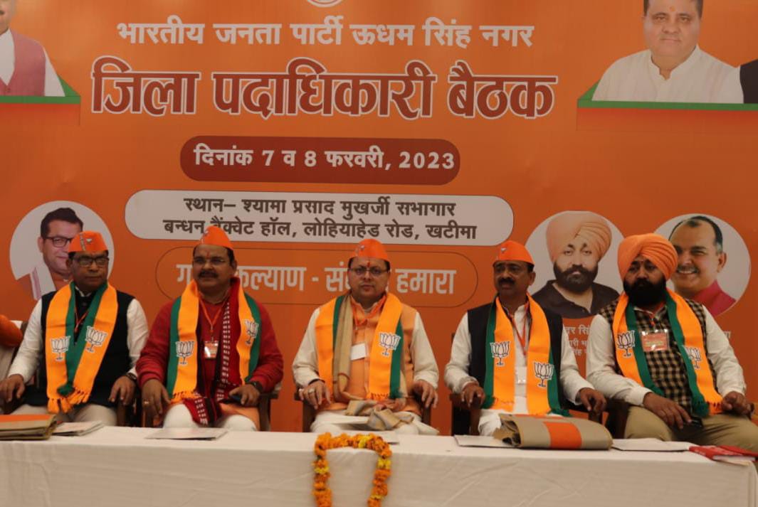 उधम सिंह नगर/खटीमा – आज 7 फरवरी से खटीमा में प्रारंभ हुई दो दिवसीय जिला कार्यसमिति का उद्घाटन प्रदेश के मुख्यमंत्री पुष्कर सिंह धामी द्वारा दीप प्रज्वलित कर किया एव वन्दे मातरम गीत के साथ कार्यसमिति की शुरूआत हुई।