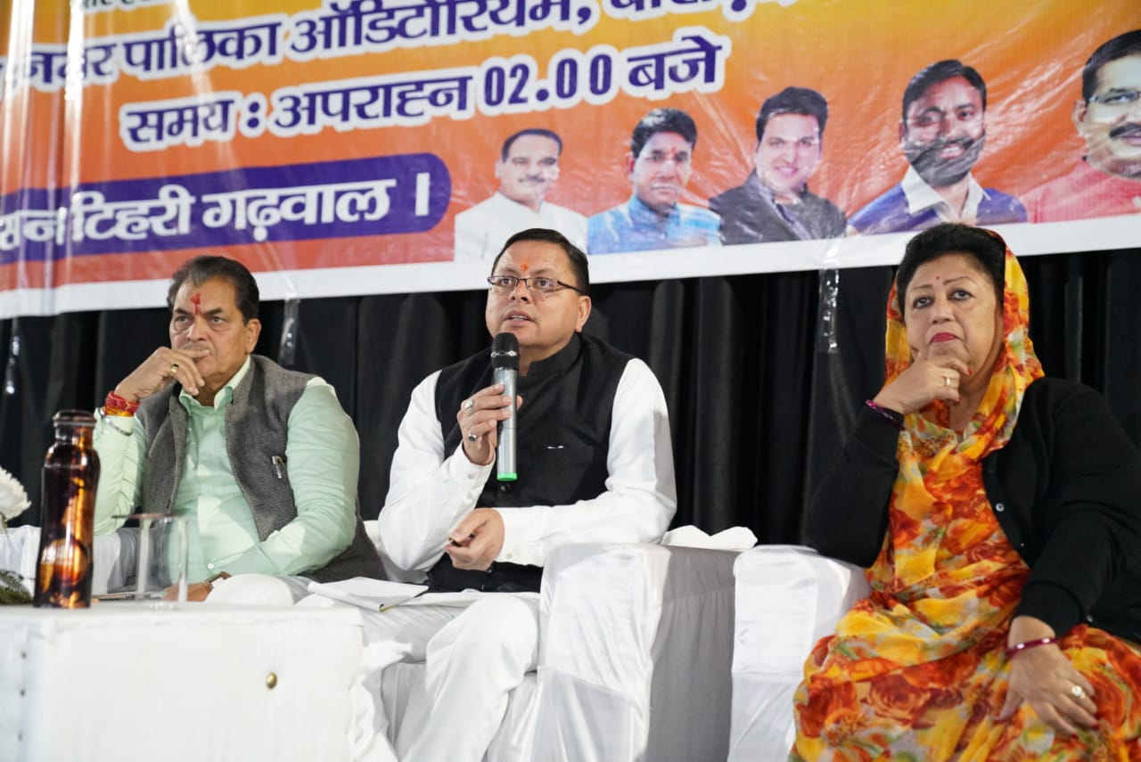 टिहरी – मुख्यमंत्री पुष्कर सिंह धामी ने शनिवार को नगर पालिका ऑडिटोरियम, बौराड़ी में मुख्य सेवक आपके द्वार जन संवाद कार्यक्रम में विभिन्न योजनाओं के लाभार्थियों से संवाद किया। इस अवसर पर एन.आर.एल.एम, पंचायतीराज, सहकारिता, सैनिक कल्याण, पर्यटन, कृषि मत्स्य, उद्यान, समाज कल्याण एवं अन्य विभागों की विभिन्न योजनाओं से जुड़े लोगों से मुख्यमंत्री ने संवाद किया।