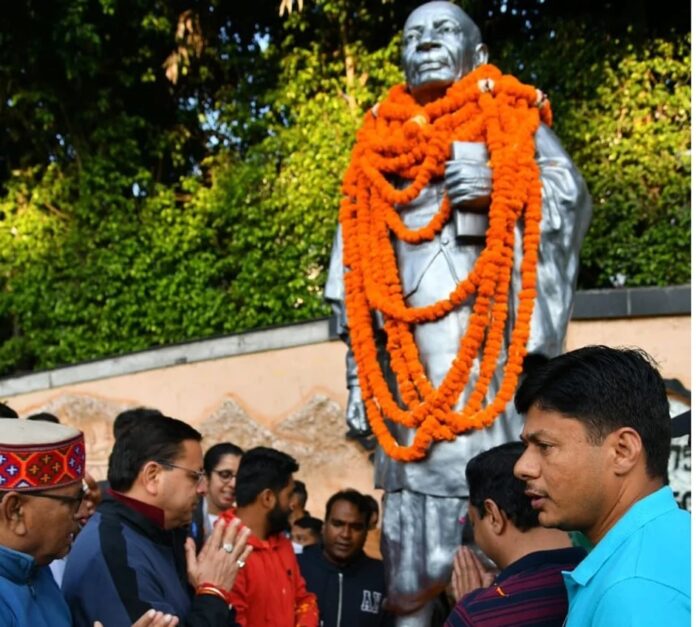 मुख्यमंत्री पुष्कर सिंह धामी ने लौह पुरुष सरदार वल्लभ भाई पटेल को नमन करते हुए प्रदेशवासियों को राष्ट्रीय एकता दिवस की दी शुभकामनाएं।