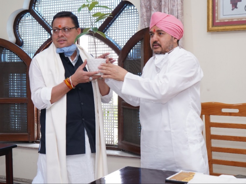 मुख्यमंत्री पुष्कर सिंह धामी ने श्री महंत देवेन्द्र दास महाराज से भेंट कर उनका आशीर्वाद प्राप्त किया