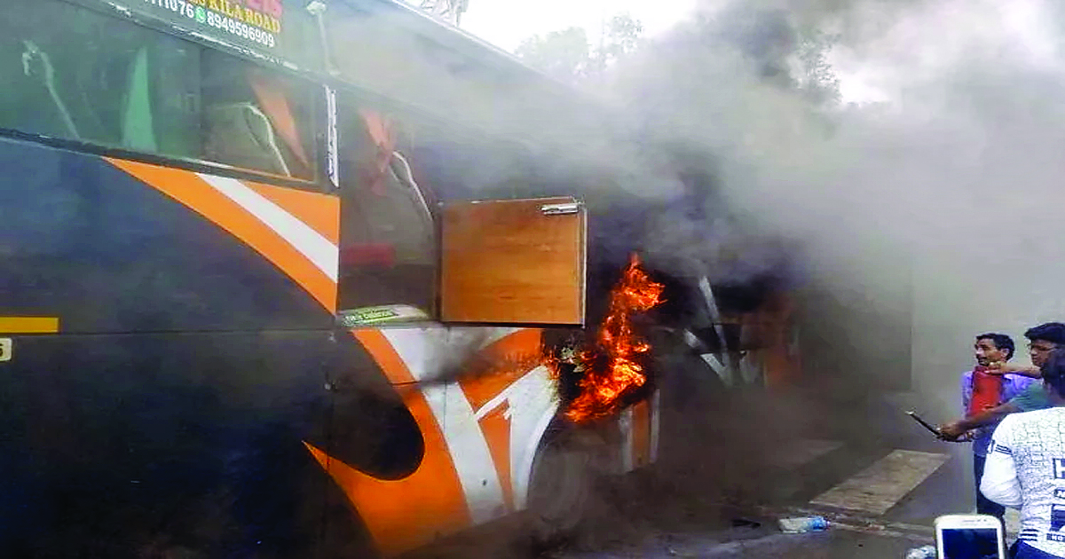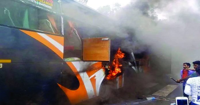 यात्री बस बनी आग का गोला, मची चीख पुकार